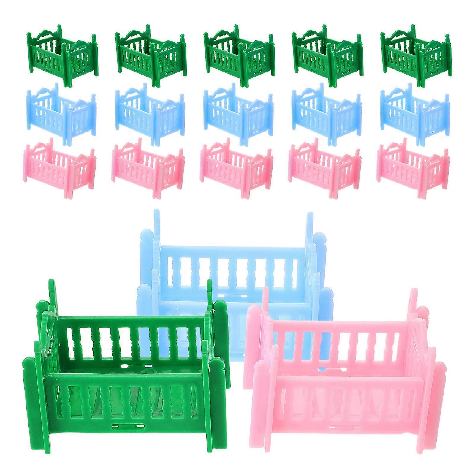Dollhouse Bed Mini Crib Furniture Set for Decoration 18Pcs Assorted Color Plastic