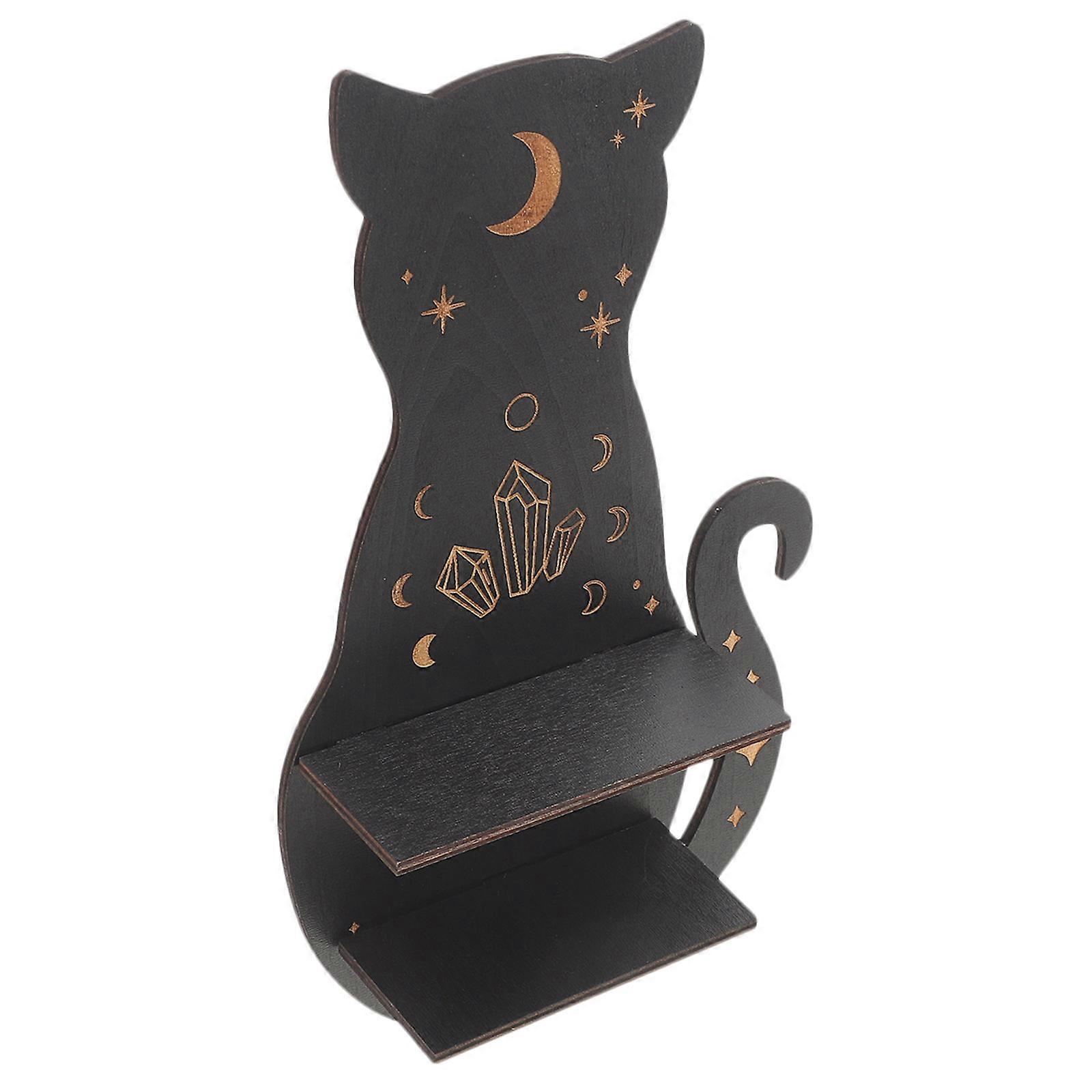 Wooden Cat Shape Floating Shelf for Wall Decoration 1 Piece Black