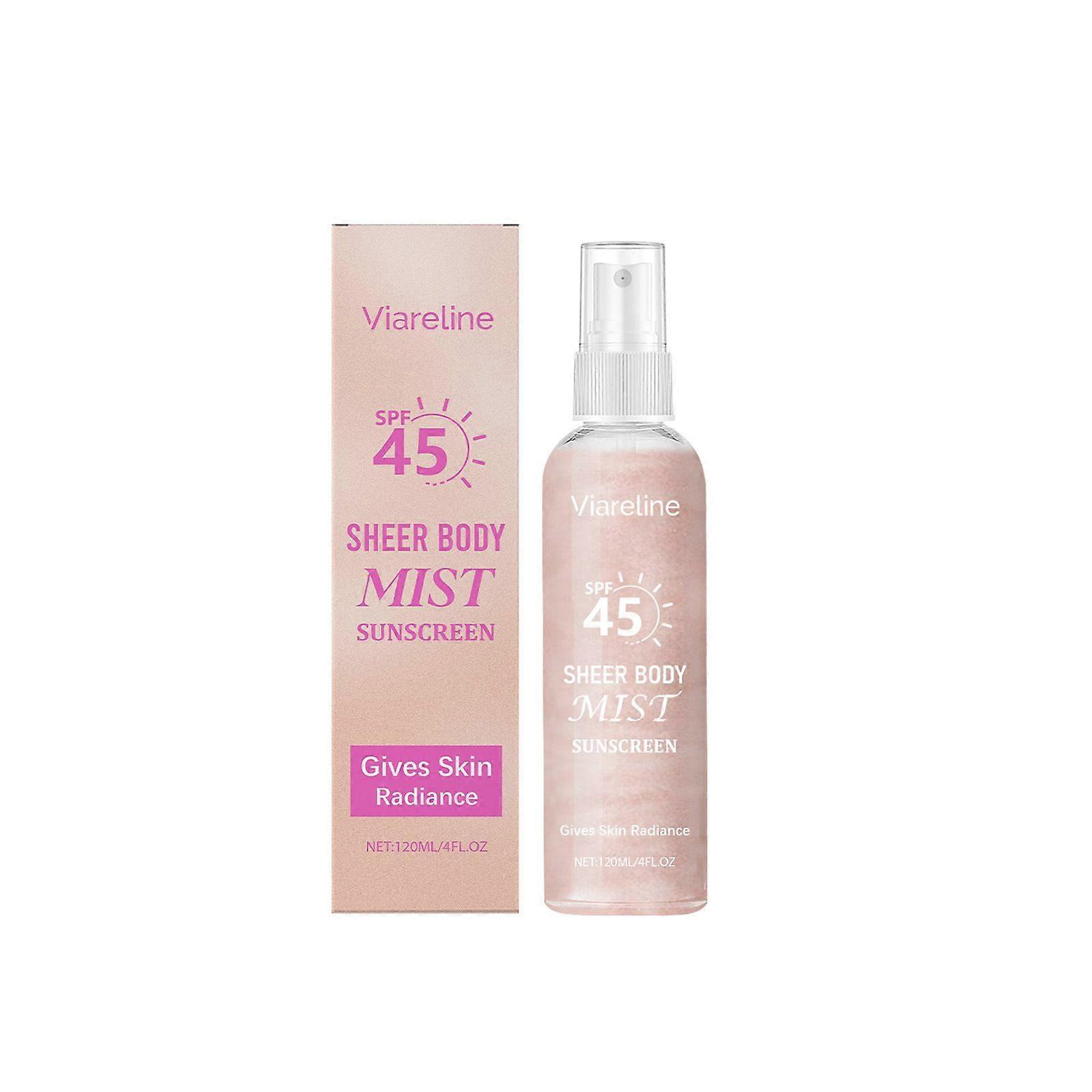 Sheer Body Sunscreen Mist, SPF 45 Ultra-fine Glowing Spray, Lightweight Hydrating Non-Greasy Quick Drying, Infused with Shimmering Radiant Glow Sunscr