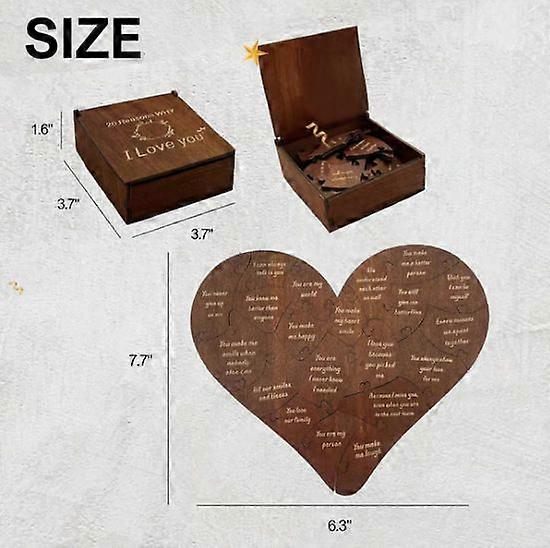 20 Reasons Why I Love You Gift Box Romantic Heart Wooden Puzzle for Him/Her, Perfect Valentines Day/Anniversary/Wedding Gift for Boyfriend, Girlfrien