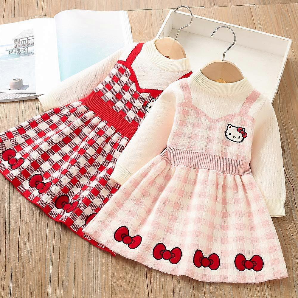 Kawaii Anime Sanrio Girls Dress Sweater Skirt Hello Kitty Cartoon Embroidery Princess Fashion Cotton Casual Girls Knitted Skirt