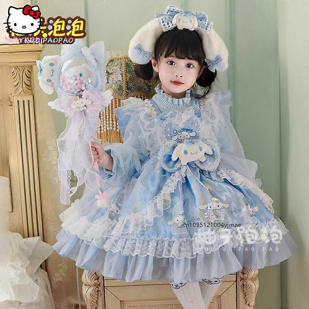 Cinnamoroll Girls Lolita Sweater Dress Cartoon Sanrio Anime Winter Cute Princess Birthday Party Role Play Dress Kawaii Xmas Gift