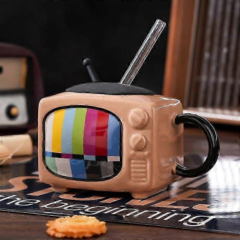 3d Retro Tv Shape Ceramic Coffee Mugs Creative Television Milk Beer Mugs With Cover Household Cup Exquisite Drinking Drinkwarea