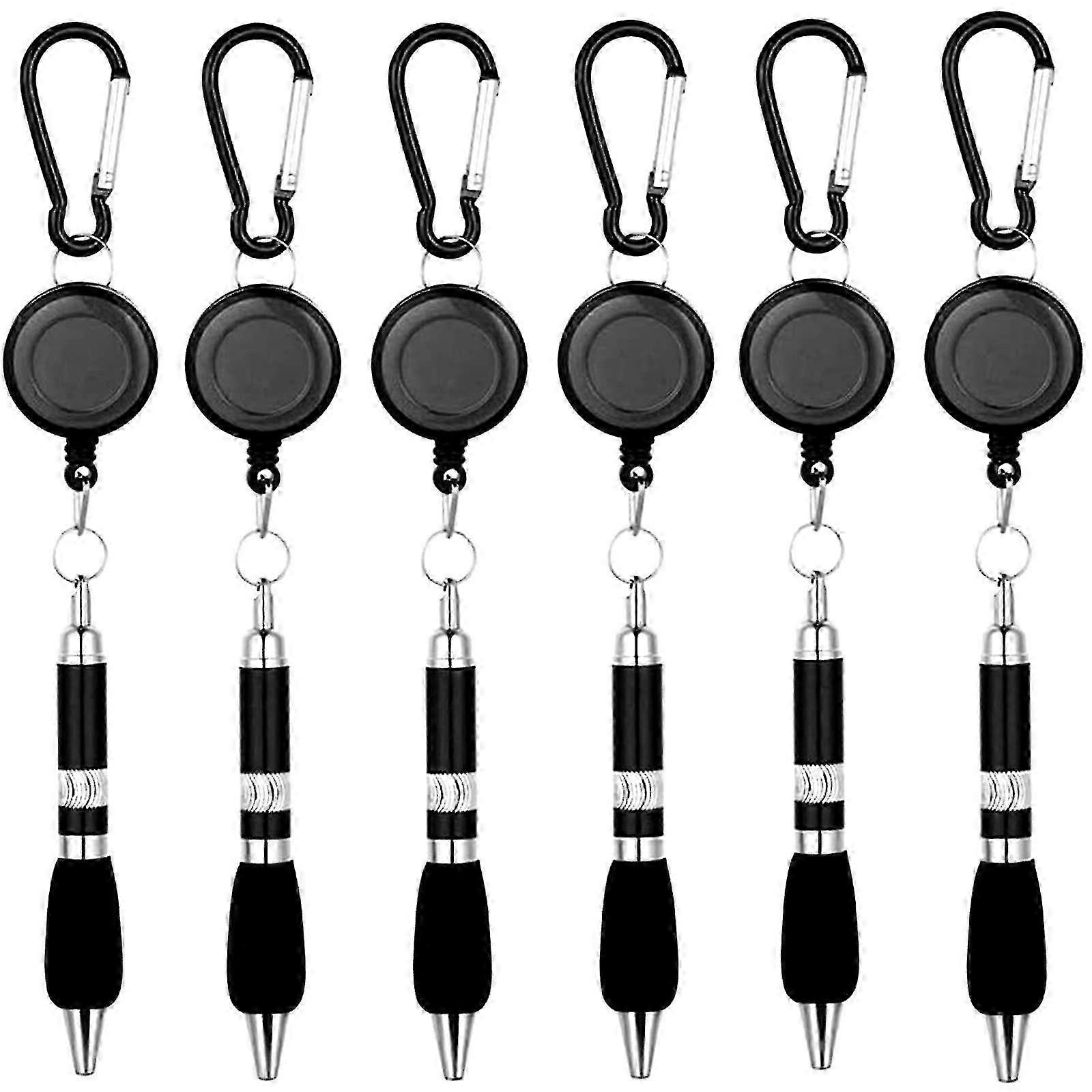 12 Pack Clip On Pens Carabiner Pens Retractable Badge Reel Pen Belt Clip And Carabiner Keychain Ballpoint Pen, Blackf