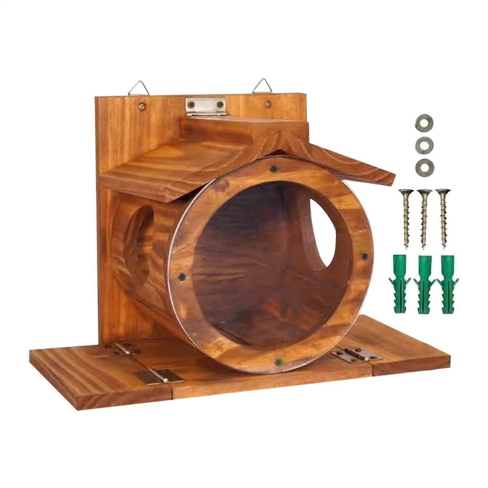Wooden Squirrel Feeder Box with Ventilation Holes, Weatherproof Garden Feeding Station for Nuts and Corn