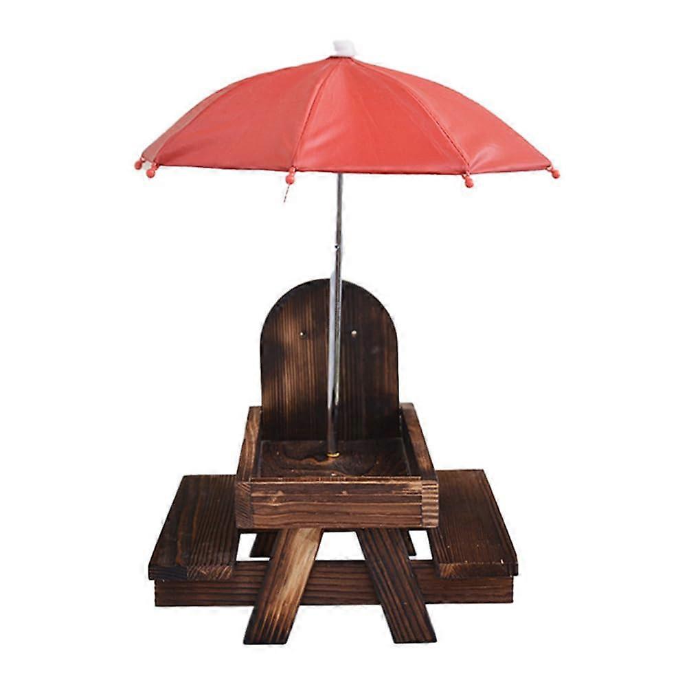 Wooden Squirrel Feeder Picnic Table with Weatherproof Umbrella, Garden Corn Cob Holder