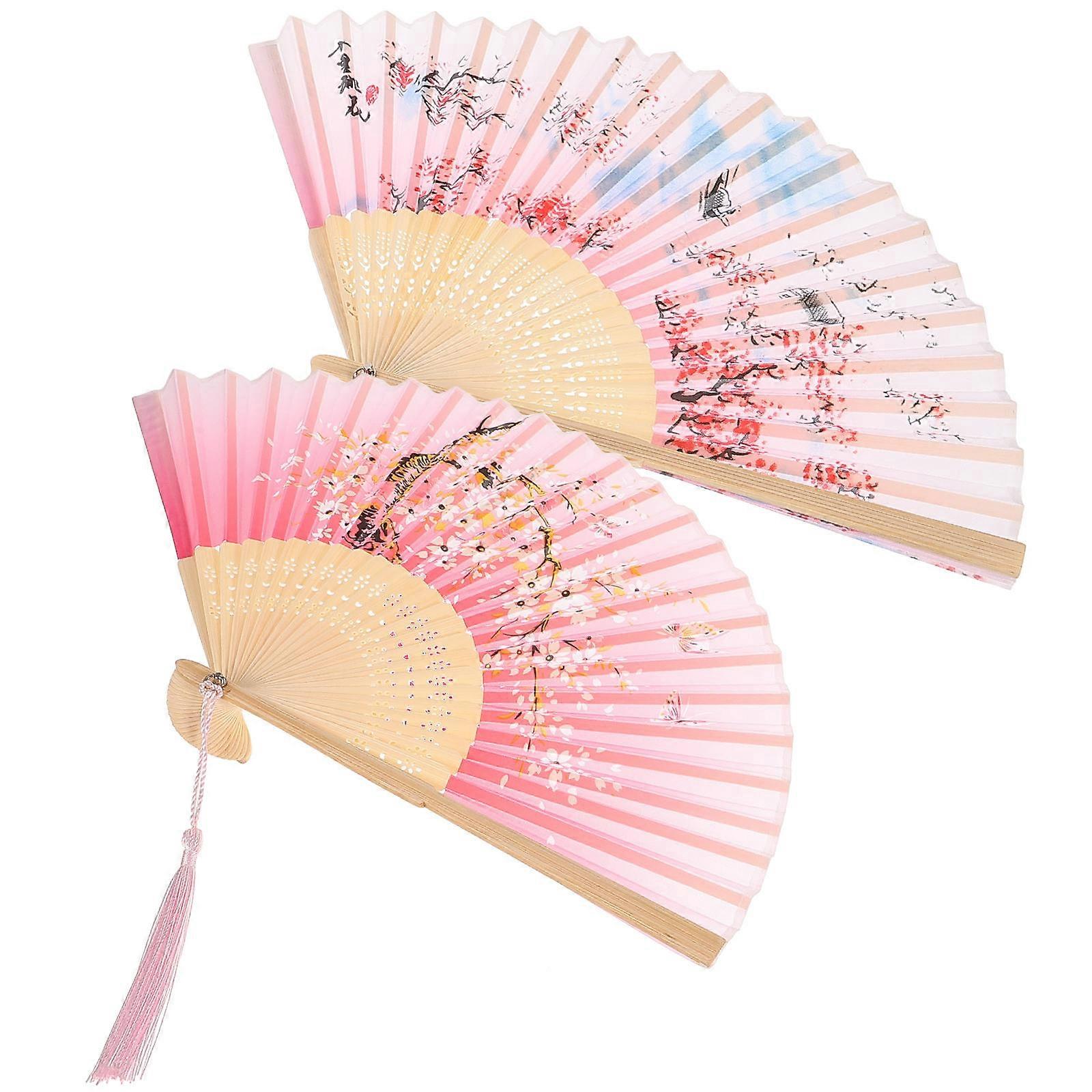 Retro Hand Fan Folding Fan for Daily Use 2Pcs Set