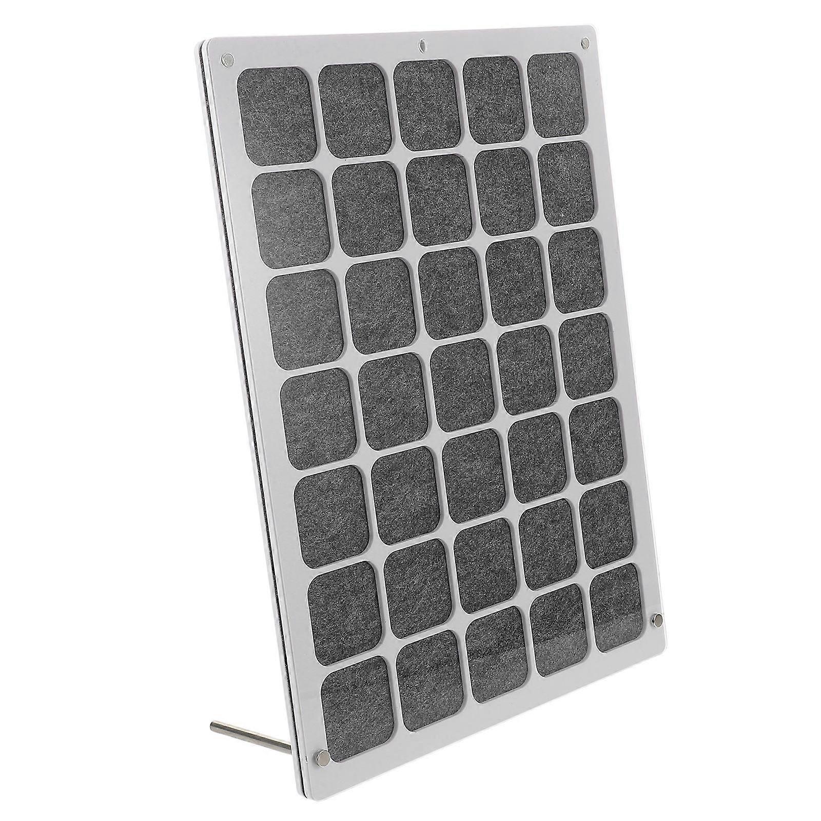 This transparent storage box is tailored for organizing and displaying various collectibles, including medals, badges, and brooches. Its minimalist design blends effortlessly with any decor, while the protective features keep your items safe. Perfect for creating a tidy and visually striking display, it caters to both practical and aesthetic needs. Features -Color:Grey -Material:Plastic, fabrics -Size:36.50X26.80X1.00cm/14.34X10.53X0.39in -Note: Can contain 35pcs medals within 43x43cm. -Transparent pin frame display case: showcase your badges and medals with a clear plastic case that offers an unobstructed view and enhances their presentation -Dustproof brooch storage box: maintain the cleanliness and shine of your collectibles with a protective cover that reduces exposure to dust and debris - construction: built for stability, this display case is perfect for tabletop use, adding a touch of elegance to your space -Space-saving solution: keep your collection organized and secure with a compact design that prevents items from scattering or getting lost -Effortless setup: enjoy quick and easy assembly without tools, allowing you to design the display to suit your preferences and environment Package list: 1 x badge storage box