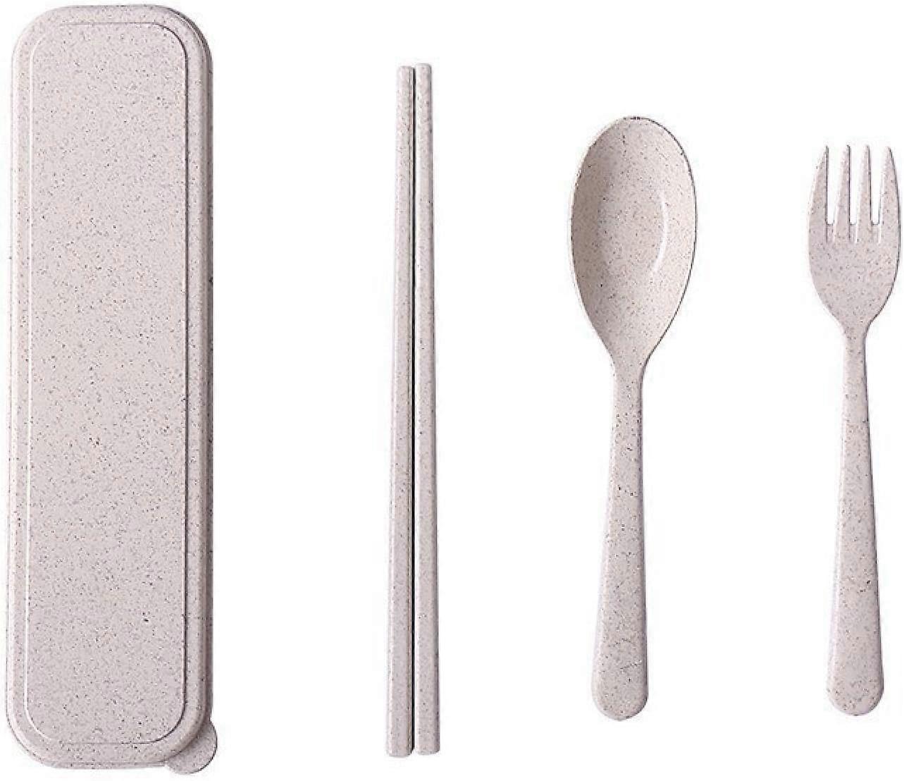 Wheat Straw Spoon Chopsticks Fork Three-Piece Set of Student Adult Travel Cutlery with Box Cutlery Chopsticks, Spoon Fork
