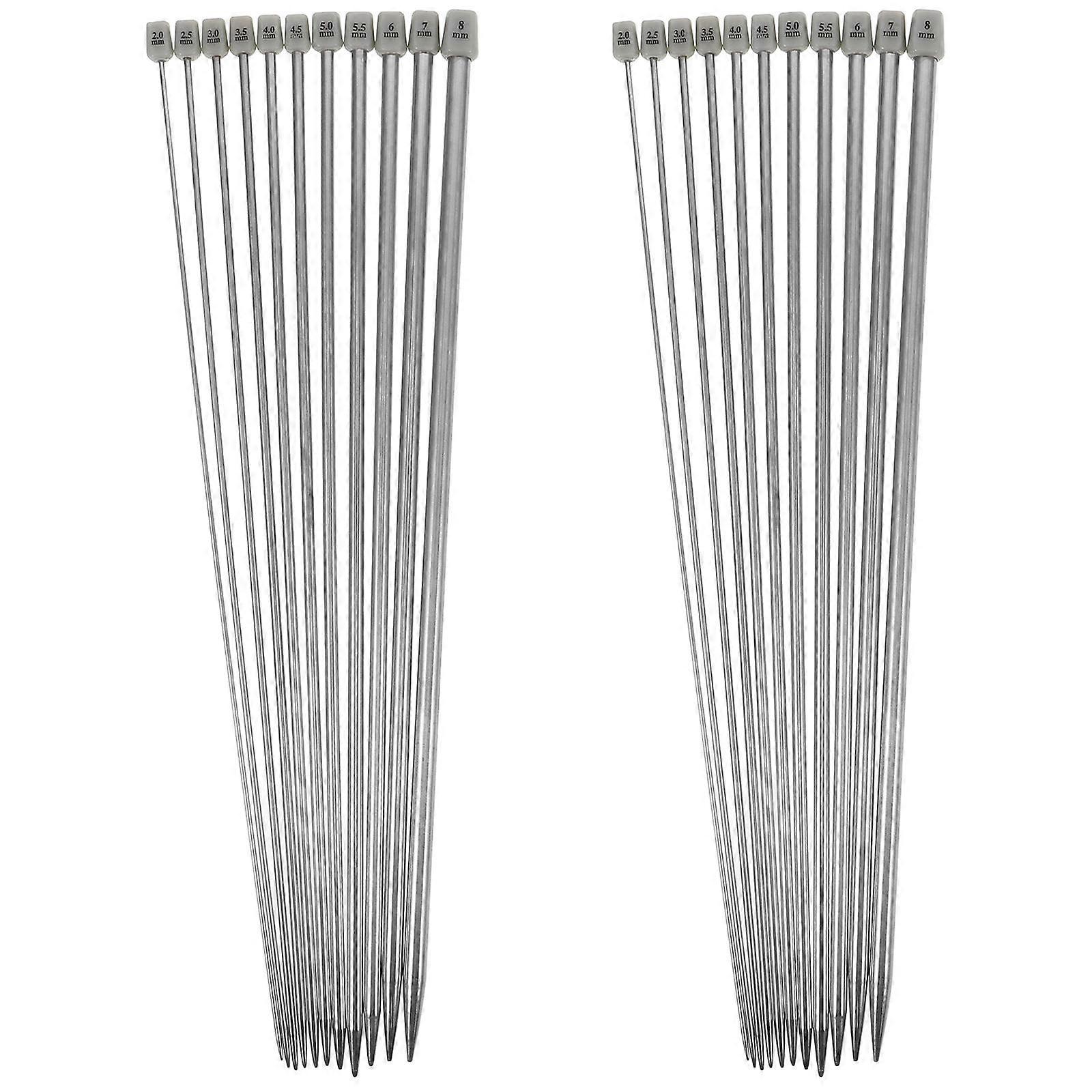 11 Pairs of 36cm Stainless Steel Straight Single Pointed Knitting Needles and Crochet Hooks 2.0mm to 8.0mm Silver