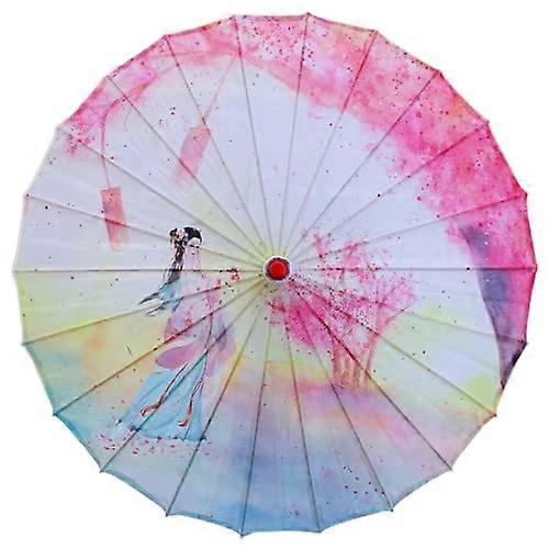 Japanese Paper Umbrella with Colorful Artistic Painting and Wooden Handle for Wedding Photography