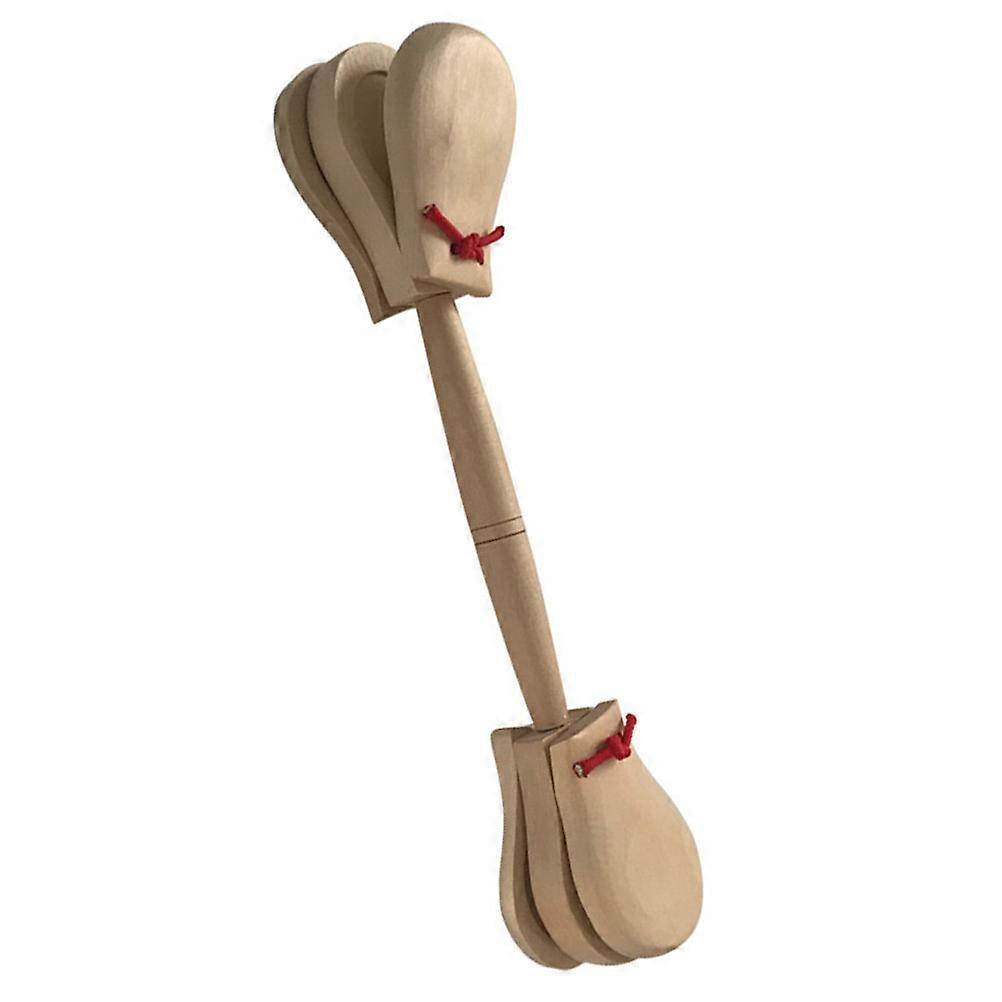 Wood Double Head Castanets for Kids Educational Playthings Safe Plastic Khaki Color