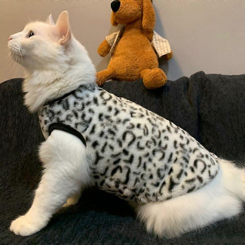This cat sweater is designed for cats, puppies, and small dogs. Please measure carefully before purchasing.Comfortable and Warm: This cat garment is made of warm and soft fleece fabric, providing excellent warmth and keeping your pet warm in the fall and cold winter. It can also be worn as pajamas for added comfort.Pullover Style: This pet vest can be worn directly over the body. The front leg openings are open, preventing any feeling of restriction for your cat or puppy, allowing them to relax and feel more comfortable.Machine Washable: This cat pajama is made of fleece fabric and is machine washable and dryable. Easy to care for, so you don't have to worry about your pet getting dirty or having trouble cleaning it.Faux Leopard Print Design: This cat garment features a leopard print pattern, instantly transforming your cat into an adorable little leopard and adding fun to your home. It's the perfect holiday surprise for your furry friend.