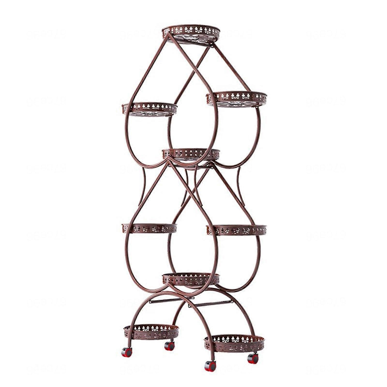 Metal Plant Stand 9 Tier with Wheels Brake, Tall Iron Flower Pot Holder for Patio Balcony Garden