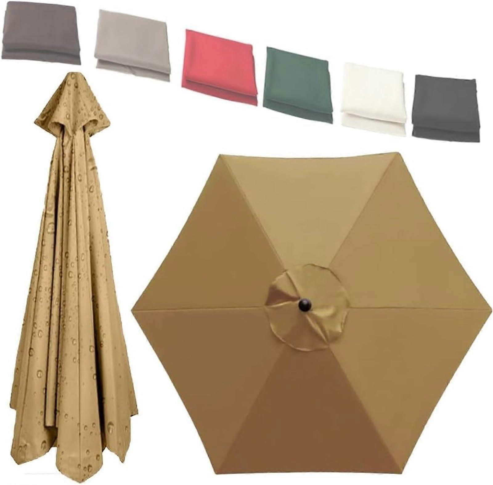 Patio Umbrella Canopy Replacement 3m Khaki UV Sun Protection Waterproof Fade Resistant 6Rib