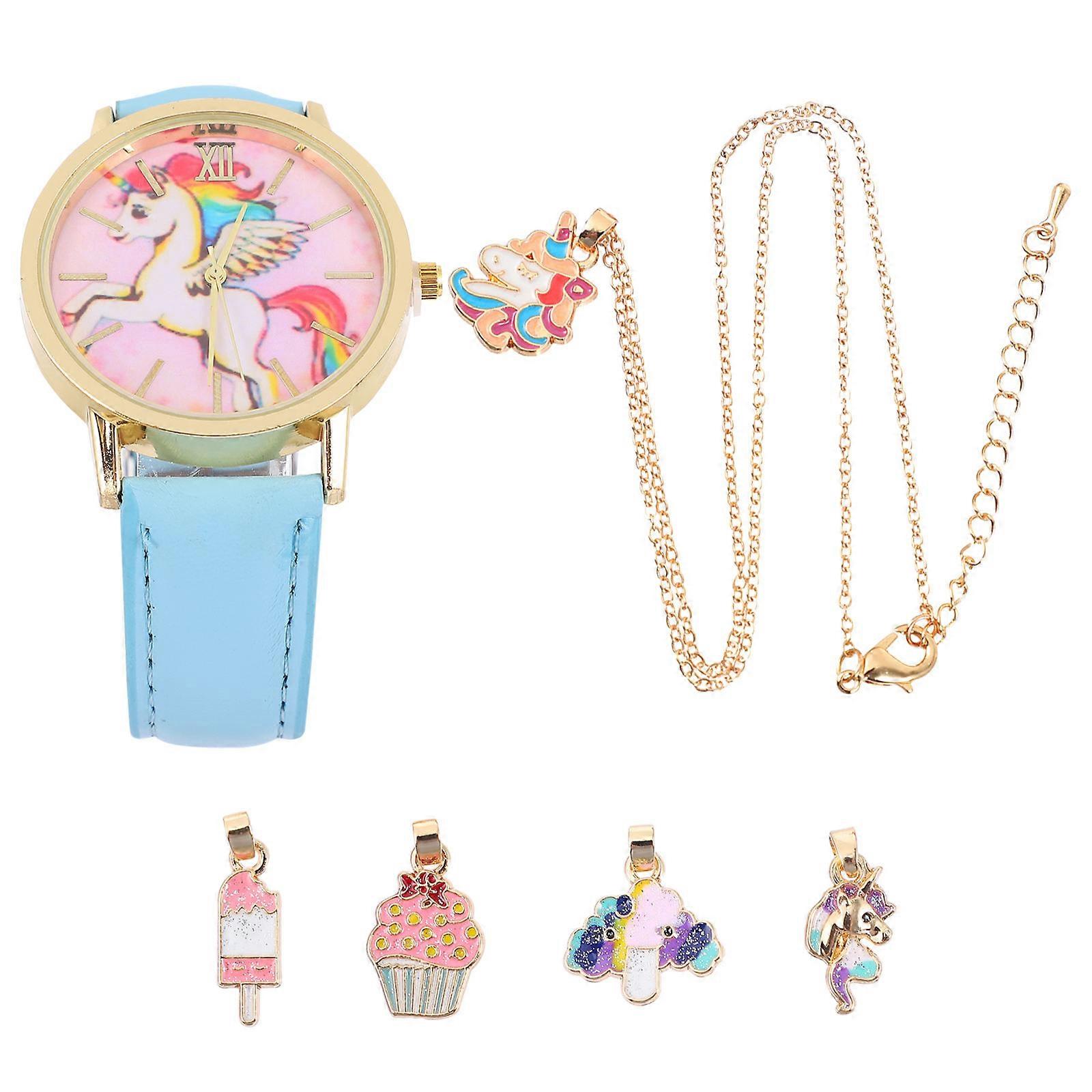 Childrens Watches For Girls Cartoon Watch Set Blue 47X1.7CM Time Telling 1Set