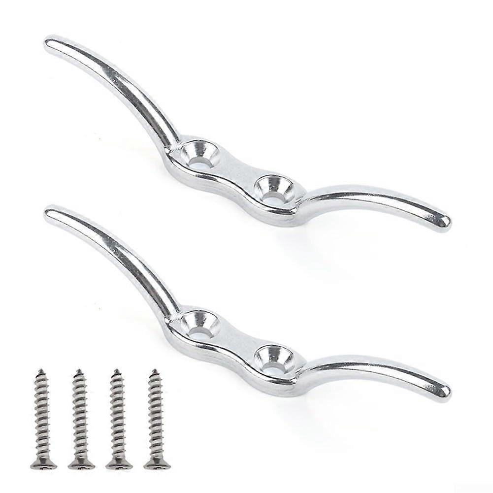 316 Stainless Steel Rope Cleat Hook 6 Inch Marine Grade with Screws for Flagpole and Boat, 2pcs