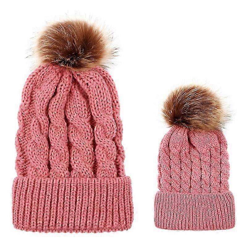 25-26 Parent-Child Mom Baby Kids Matching Knitted Beanie Pom Pom Hat Ski Cap
