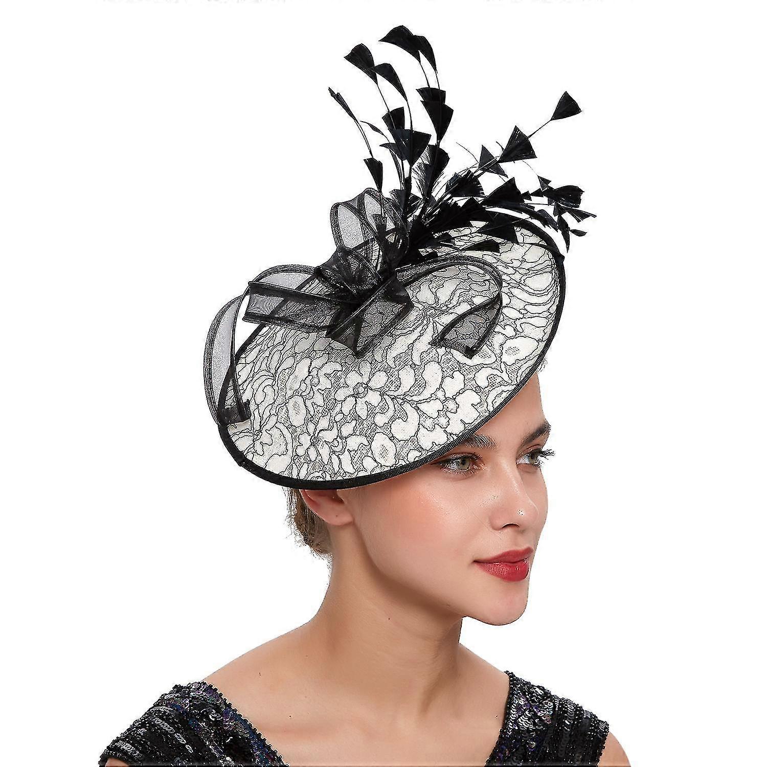 25-26 Fascinator Hat Floral Feather Pillbox Derby Hats for Women Wedding Tea Party with Headband Clip Whit