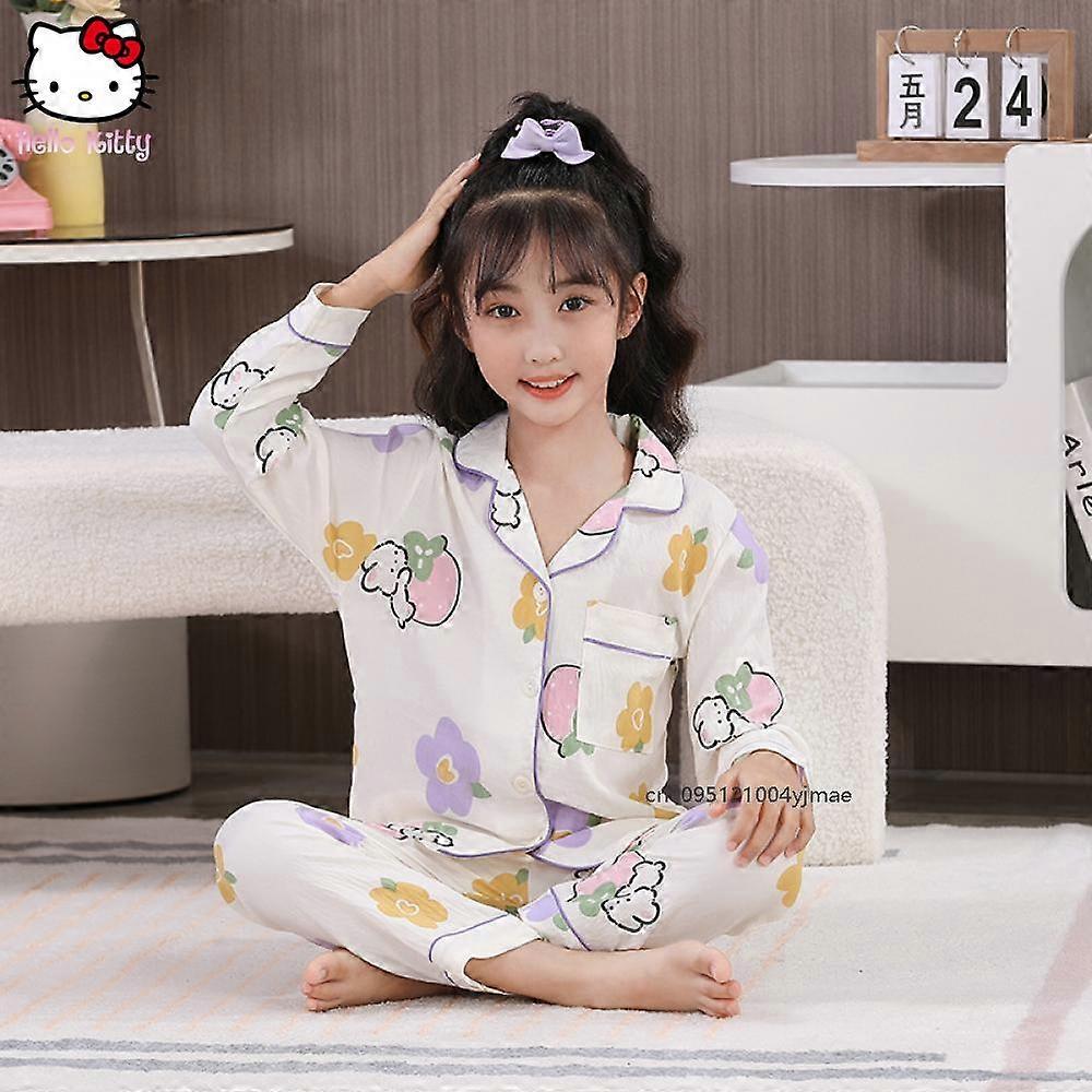 Sanrio Hello Kitty Girls Pajama Sets Print Kawaii Cartoon Style Comfortable Soft Housewear Set Fashion Kawaii Night Clothes Cute
