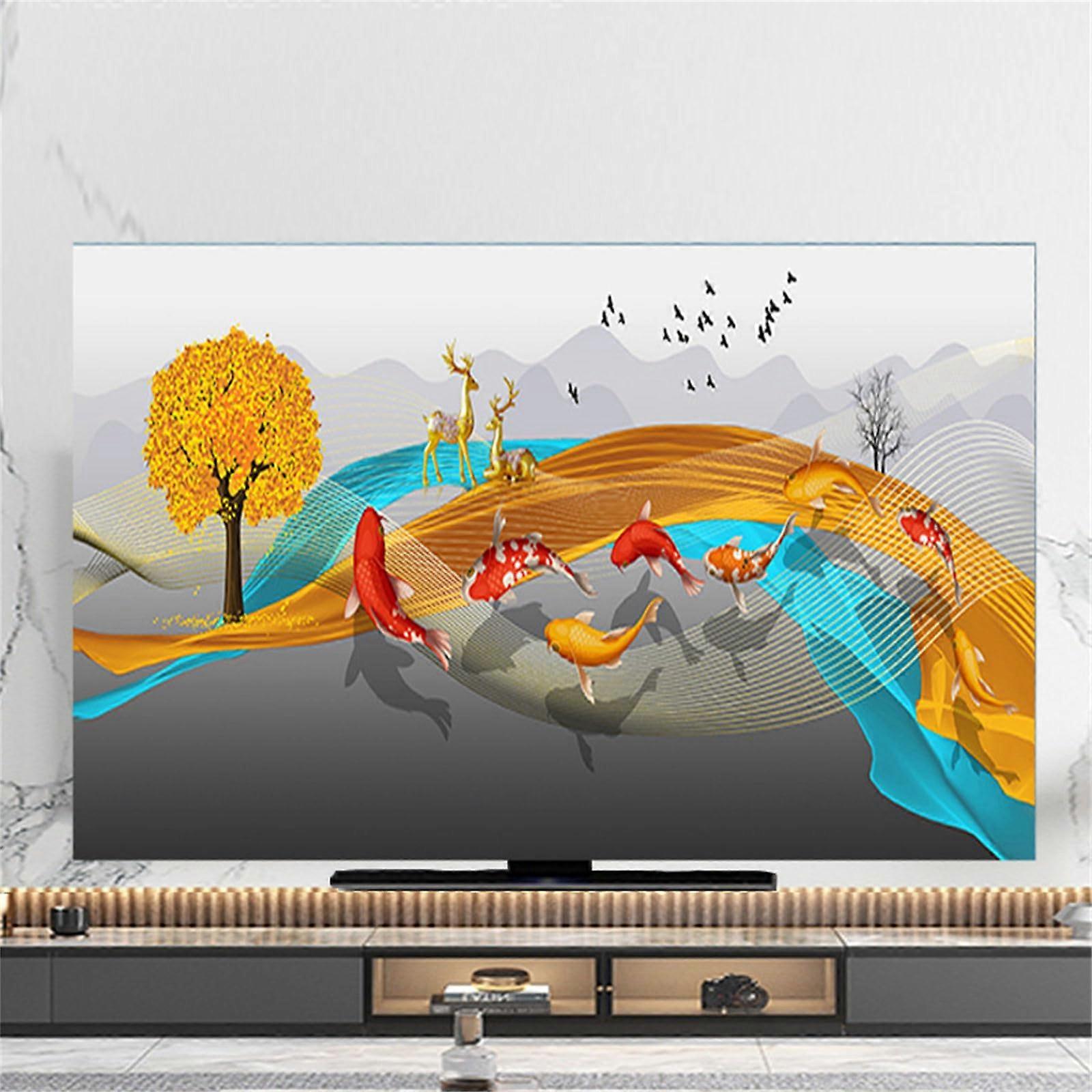Purpose and protection: Direct sunlight or strong reflections can damage a TV screen and reduce brightness. This TV cover is designed to protect the screen and help extend the life of the TV. Material and fit: Made from elastic fabric with good elasticity, a soft hand feel, and air permeability for heat dissipation. Installation is convenient and fast. Design and durability: The back is semiclosed to improve heat dissipation and support simple circuit routing. The edge features hemming stitching to prevent cracking and maintain shape over time. Aesthetic and decor: Reactive printing and dyeing technology yields vivid colors, providing a stylish interior accent and enhancing room decor. Key attributes and performance: Elastic fabric supports a snug fit while allowing easy placement and removal; designed to protect the screen from sun and glare without compromising access to the TV area or cables. Use scenarios: 1) In a sunlit living room or near a large window to shield the screen from direct sunlight and reflections. 2) In an office or conference room with bright lighting to preserve screen quality during downtime. 3) As a decorative cover when the TV is not in use, adding a colorful, stylish touch to the living space. Compatibility and usage notes: Designed to protect standard TV screens and provide easy installation; please refer to the product size guide to ensure the fit for your specific TV model and space.
