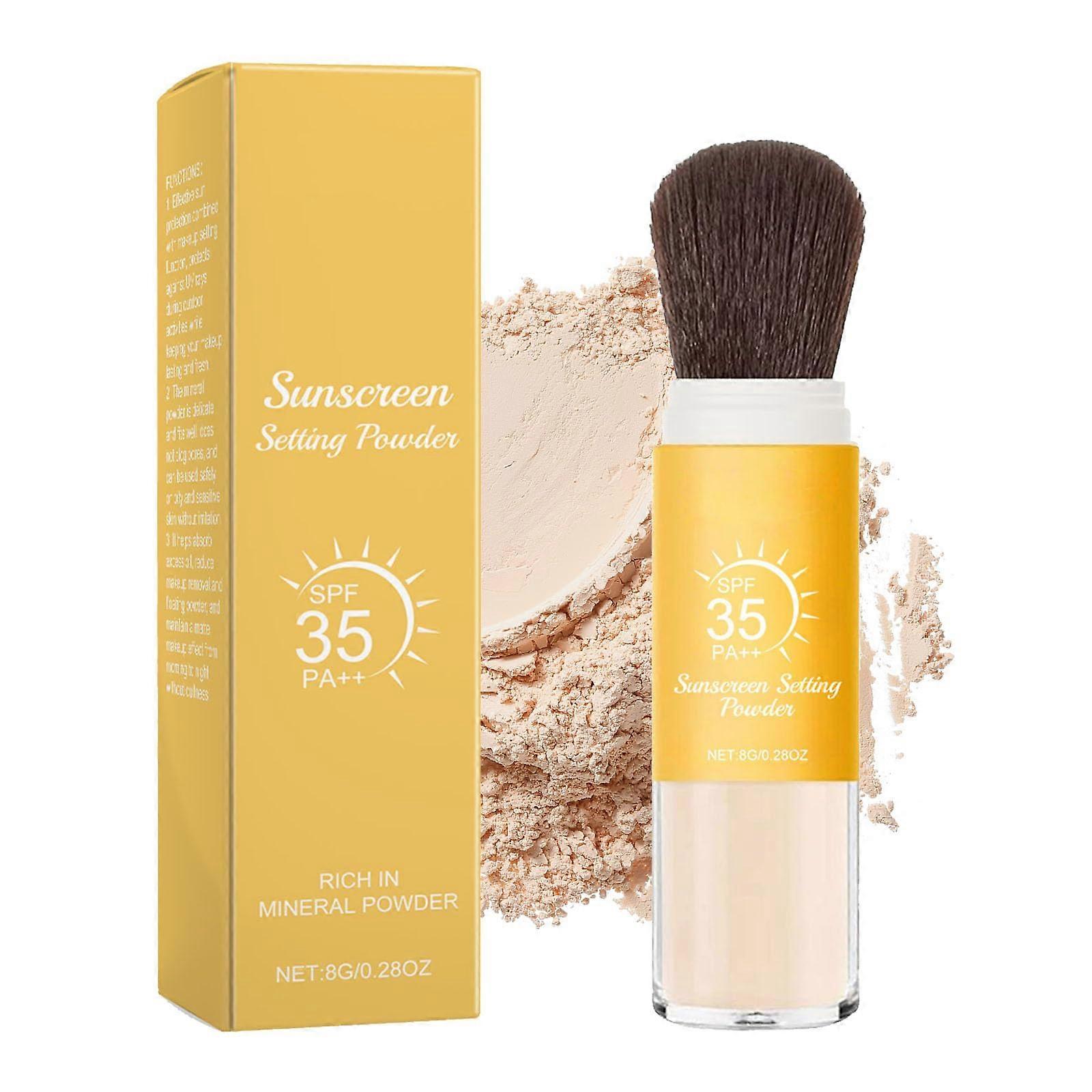 Sunscreen Setting Powder, 0.25 Ounce 1Pc (Net 8 g) Use: Setting. Shelf Life: 3 Years. Key Benefits Mineral formula with sunscreen properties and SPF35 for daily cosmetic use. Lightweight, finely milled powder creates a natural matte finish without feeling heavy. Controls excess oil and shine to help makeup look clearer and longer lasting. Breathable texture that minimizes visible powder and blends smoothly into skin. Suitable for all skin types with a gentle, skinfriendly formula. Product Features Function: Setting powder for face and hairline touch ups. Net weight: 8 g (0.25 Ounce). Pack options: 1, 2, or 3 pieces. Finish: Natural matte translucent effect that reduces shine while preserving skin texture. Application: Works well with a mineral brush or puff for even distribution and buildable coverage. Shelf life: 3 years from manufacture. Practical Uses Daily makeup setting: Apply lightly over foundation to set makeup and reduce midday shine. Quick touch ups: Use on the Tzone or hairline to absorb excess oil between routines. Photo ready and on the go: Ideal for travel or quick freshening before events and meetings. How to Use Dip a soft brush into the powder, tap off excess, and apply with light sweeping motions. Build coverage gradually for a natural look. Avoid heavy layering to maintain a breathable finish. Packaging and Notes Package includes 1, 2, or 3 pieces of Sunscreen Setting Powder as selected. Actual product color may vary slightly from images due to display and lighting differences. For any product questions, please use the seller contact option provided on the platform. This Sunscreen Setting Powder offers a lightweight, mineral option for setting makeup, reducing shine, and achieving a smooth matte finish with convenient pack sizes and a 3 year shelf life.