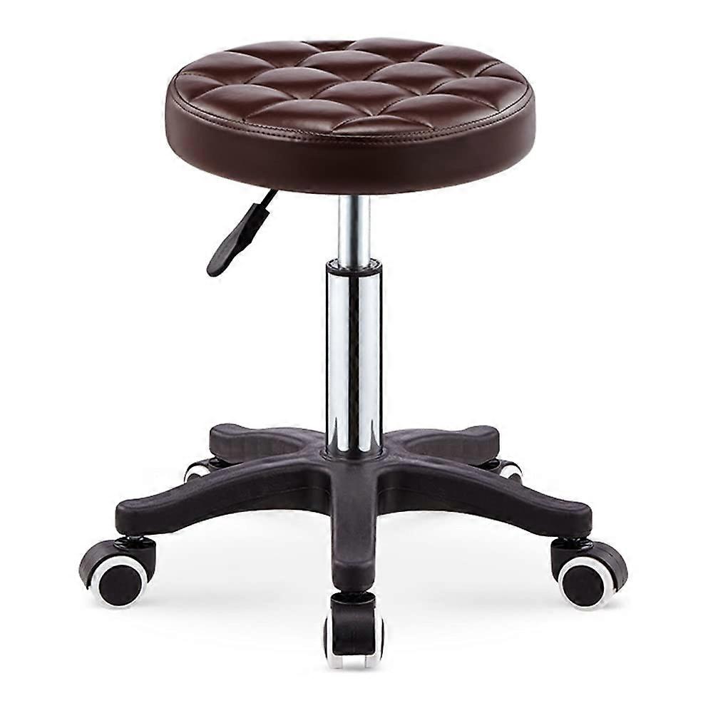 Swivel Stool with Wheels, Height Adjustable PU Leather Rolling Seat for Salon Spa Barbershop Brown