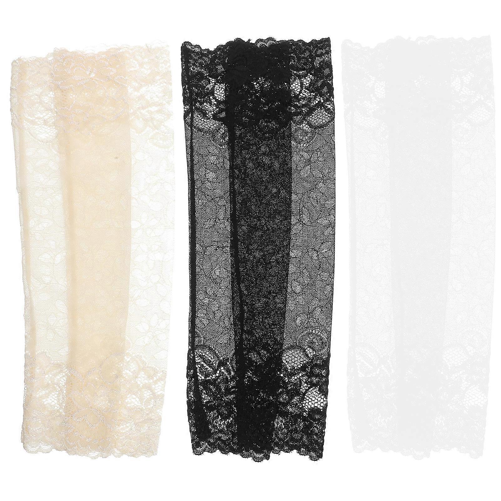 3 Pairs Lace Breathable Stretchy Arm Cover Sleeve Elbow Protector Elastic Elbow Brace for Sun Protection Black Color