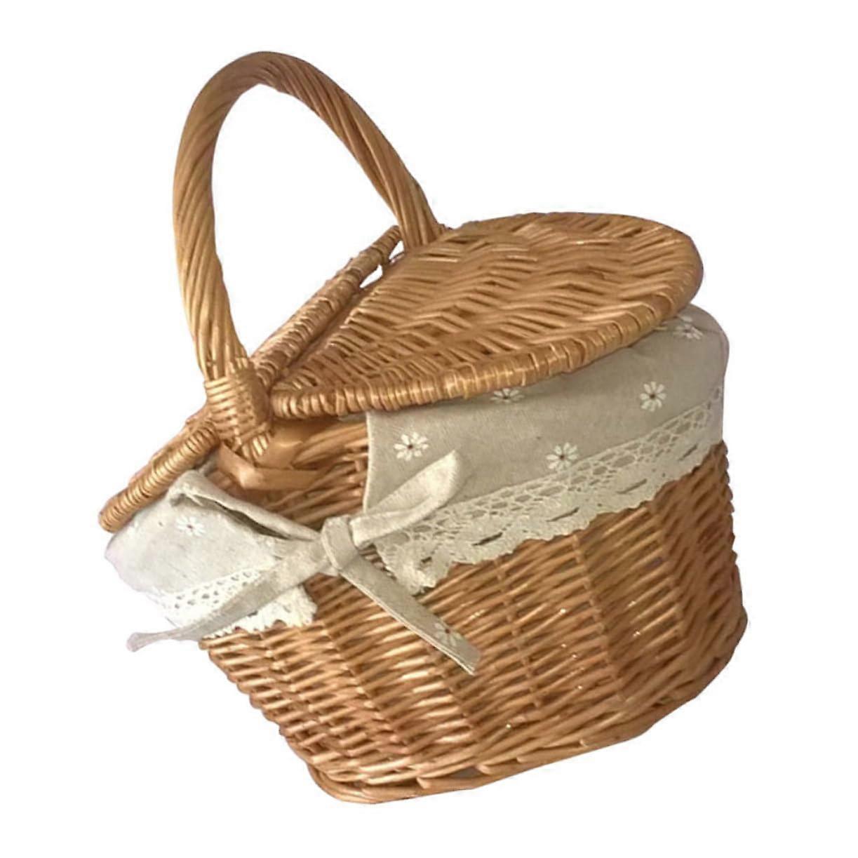 Picnic Basket with Double Lid, Elegant Woven Rattan, Large Capacity for Camping, Beach, Hiking