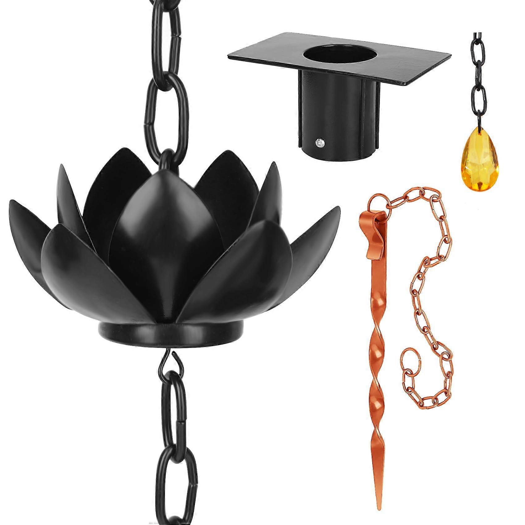 Copper Lotus Rain Chain for Gutters 8.5ft with Anchor Stake, Decorative Weatherproof Garden Feature