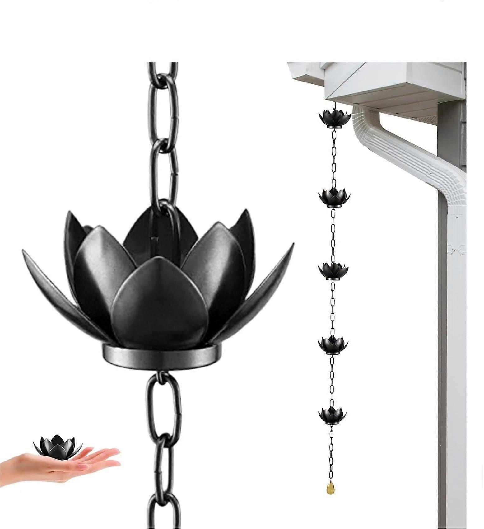 Product: Metal Rain Chain with 12 Lotus Cups — easyinstall, decorative water guide for gutters Key benefits Simple, tool installation: hangs from a standard gutter downspout using the included attachment clip. No special skills required—install or remove in minutes. Controls and directs rainwater: the 12 Lotus Cups catch and guide water down the chain, reducing splash and concentrated runoff near foundations and landscaping. Durable, weatherresistant construction: made from quality metal designed to resist weather exposure and minimize rust and corrosion for longterm outdoor use. Decorative and practical: adds a calming cascading water sound and a refined visual accent to yards, gardens, patios, or entryways while performing the function of a downspout extension. What it is and how it solves problems Replaces or supplements a straight downspout with an attractive, functional alternative that channels rainwater in a controlled way. Reduces soil erosion and puddling by slowing and spreading water flow, protecting plant beds and hardscape near the house. Provides an easy upgrade to outdoor décor without altering gutters or requiring professional help. Compatibility and performance Designed to hang from standard gutter downspouts using the included attachment clip; compatible with typical residential gutter systems. Consists of 12 interconnected Lotus Cups that efficiently catch and guide water in a steady, decorative cascade. Metal construction stands up to rain, wind, and sun exposure; minimal maintenance required to keep a clean flow. Installation and maintenance Installation: place the attachment clip over your downspout opening, hang the rain chain, adjust length as needed. No tools required. Maintenance: periodically clear leaves or debris from cups and rinse with water if buildup occurs. Inspect clip connection after severe weather. Practical use scenarios a vertical downspout at the front entrance to create a welcoming sound and visual focal point while directing runoff into a gravel basin. Mount above a rain barrel or decorative cistern to channel roof runoff for garden irrigation. Install beside a patio or garden bed to slow water flow and reduce splash, protecting mulch and plant roots. Materials and features summary Material: quality metal, weatherresistant finish Feature: 12 Lotus Cups for efficient water capture and aesthetic cascade Includes: attachment clip for tool installation A straightforward, functional upgrade that combines reliable water management with lasting decorative appeal.