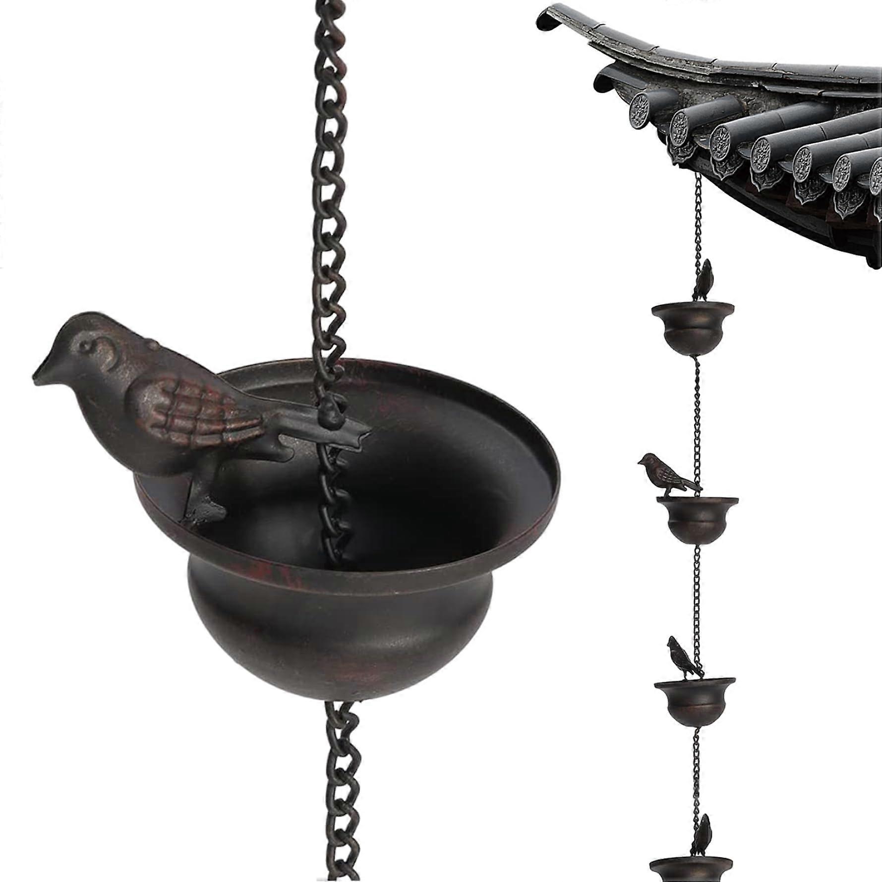 Product: Rain Chain with 8 Bird Bath Tubs What it does Converts rainwater flow into an attractive cascading feature: eight bird bath tubs hang in a stepped pattern so water moves smoothly from one tub to the next. Provides pockets of water that attract birds to bathe and linger, adding natural sound and life to your outdoor space. Key benefits Durable, weatherproof construction: made from quality metal with a rustproof finish so it withstands rain, sun, and seasonal changes while maintaining its appearance. placement: equipped with movable hooks so you can adjust where and how it hangs to fit your space and style. Dual function: serves as both a decorative rain chain and a series of small bird baths, delivering visual interest and wildlife value without extra watering or maintenance. Important attributes Configuration: 8 interconnected bird bath tubs arranged in a cascading pattern to guide water flow and create gentle sound. Material: quality metal with rustresistant treatment for longterm outdoor use. Hanging system: removable, movable hooks allow flexible positioning and easy relocation. Practical uses and scenarios or supplement a downspout: hang the rain chain where a downspout would be to direct runoff and create an attractive water feature that slows and disperses water. Enhance a porch, pergola, or patio: suspend the chain from an overhead beam to add visual movement and invite birds into seating areas or planters. Create a birdfriendly garden focal point: position near flower beds, feeders, or shrubs to give visiting birds a safe spot to bathe and refresh. Performance and care Designed to handle regular rainfall and outdoor exposure; the rustresistant metal keeps the product looking good season after season. Movable hooks make removal, repositioning, or storage straightforward when desired. Periodic rinsing to remove debris will keep the tubs clear and attractive for wildlife. Why choose this rain chain Combines practical water management with wildlifefriendly design. Sturdy, rustresistant metal construction for reliable outdoor performance. Flexible hanging options let you placement to fit your landscape or architecture.