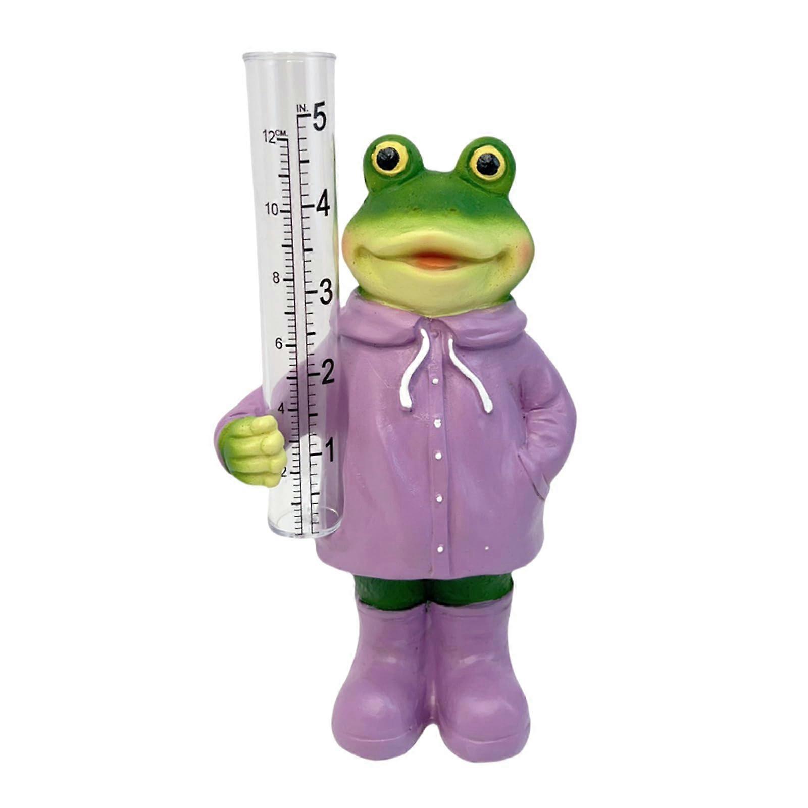 Rain Gauge Garden Statue Waterproof Resin Gnome with Durable Glass Gauge Yard Decor Frog