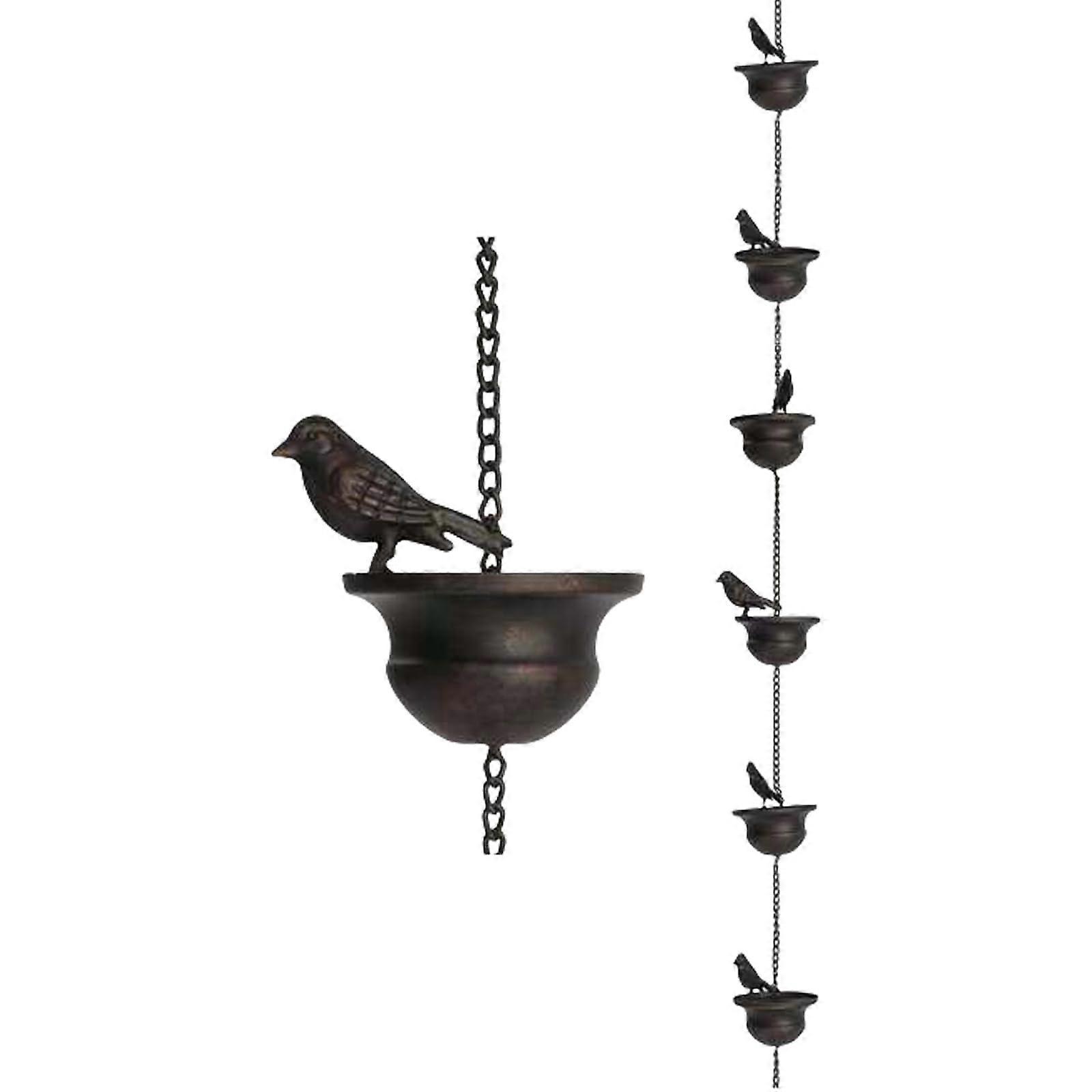 Decorative Hummingbird Rain Chain for Downspouts Rust Iron Garden Drainage with Six Bird Ornaments