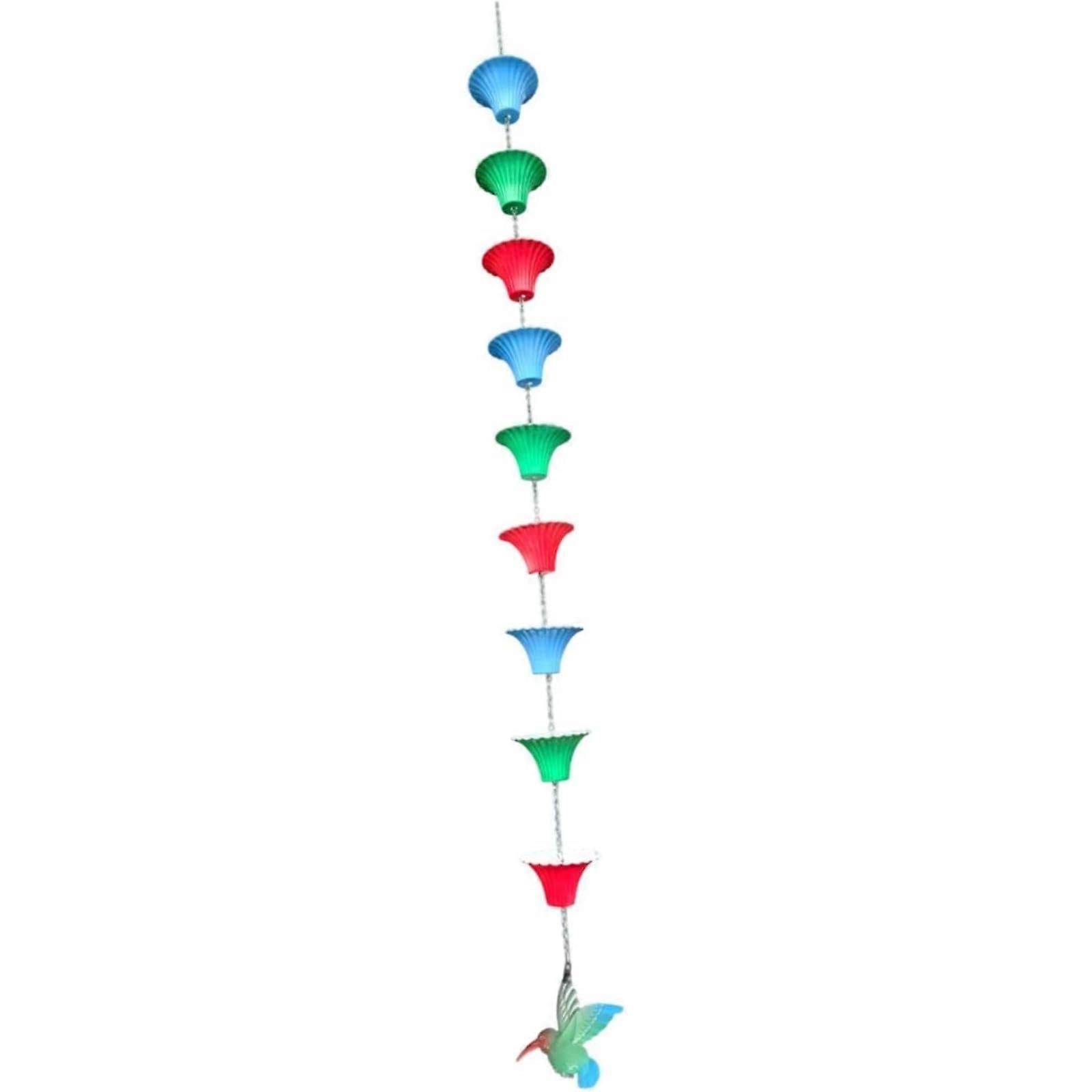 Wrought Iron Rain Chain with 9 Cups and Hummingbird Pendant for Garden Patio Outdoor Decor