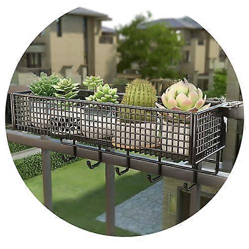 Balcony Planter Box with Hooks, Adjustable Rustproof Iron Plant Stand for Indoor Outdoor Railing
