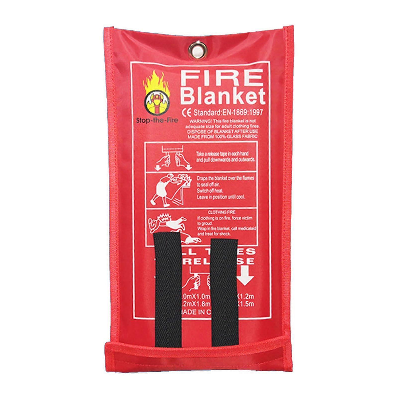 Fire Blanket 1.5m x 1.5m Fiberglass Flame Retardant for Kitchen BBQ Car Camping Safety Red