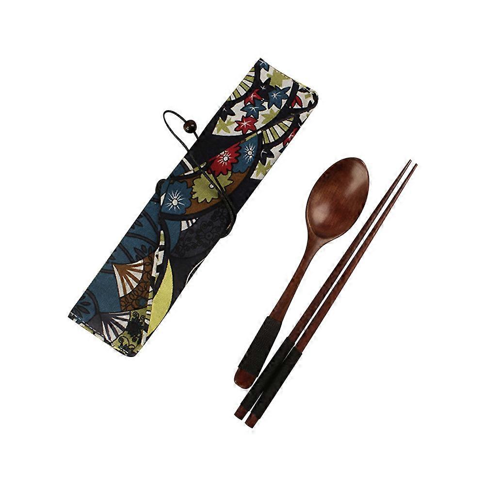 Wooden Spoon and Chopsticks Set for Eating Soup Porridge Rice Hot Pot in Assorted Color with Convenient Storage in 1 Set