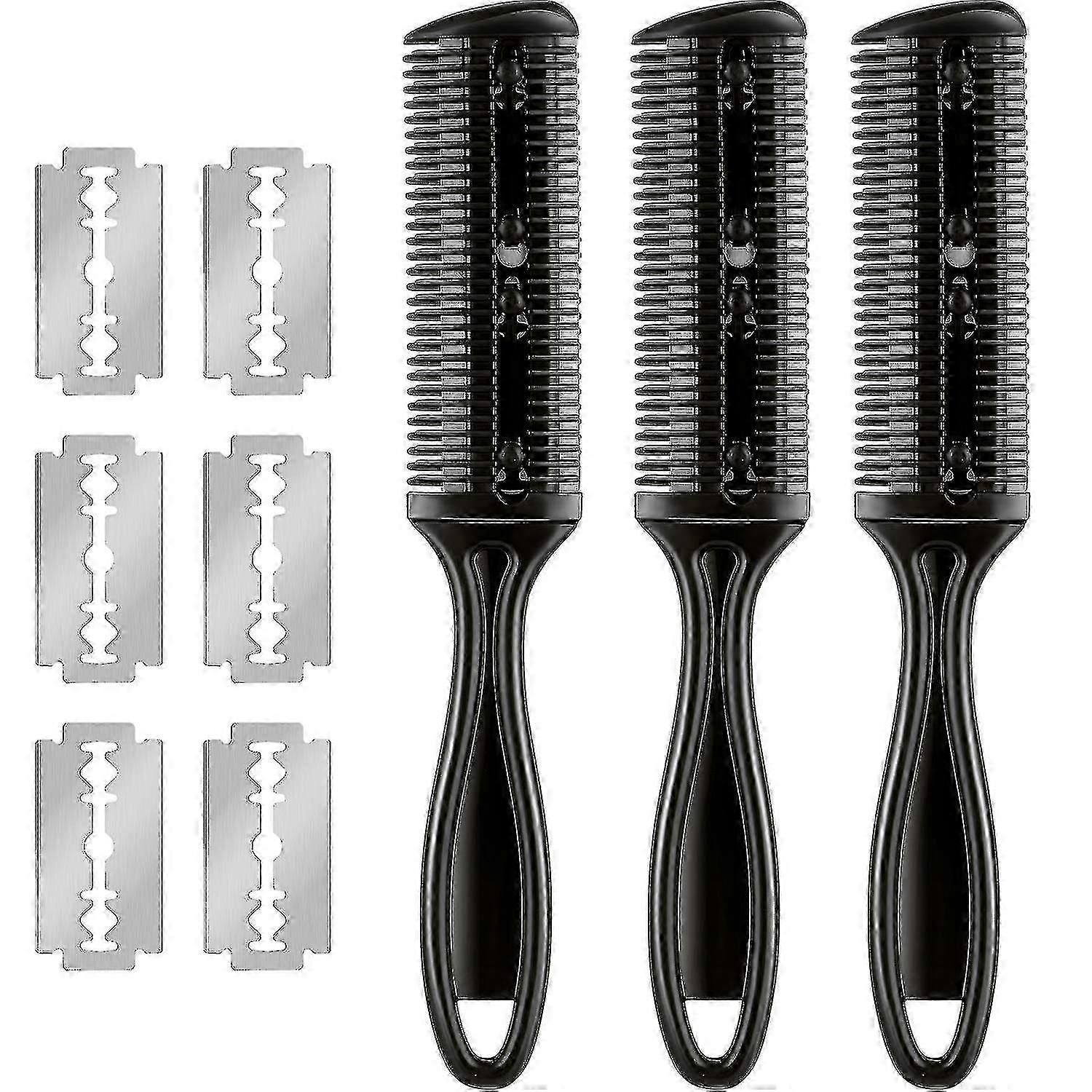 3 Pieces Razor Comb With 10 Pieces Razors, Hair Cutter Comb Cutting Scissors, Double Edge Razor(black) 25-26