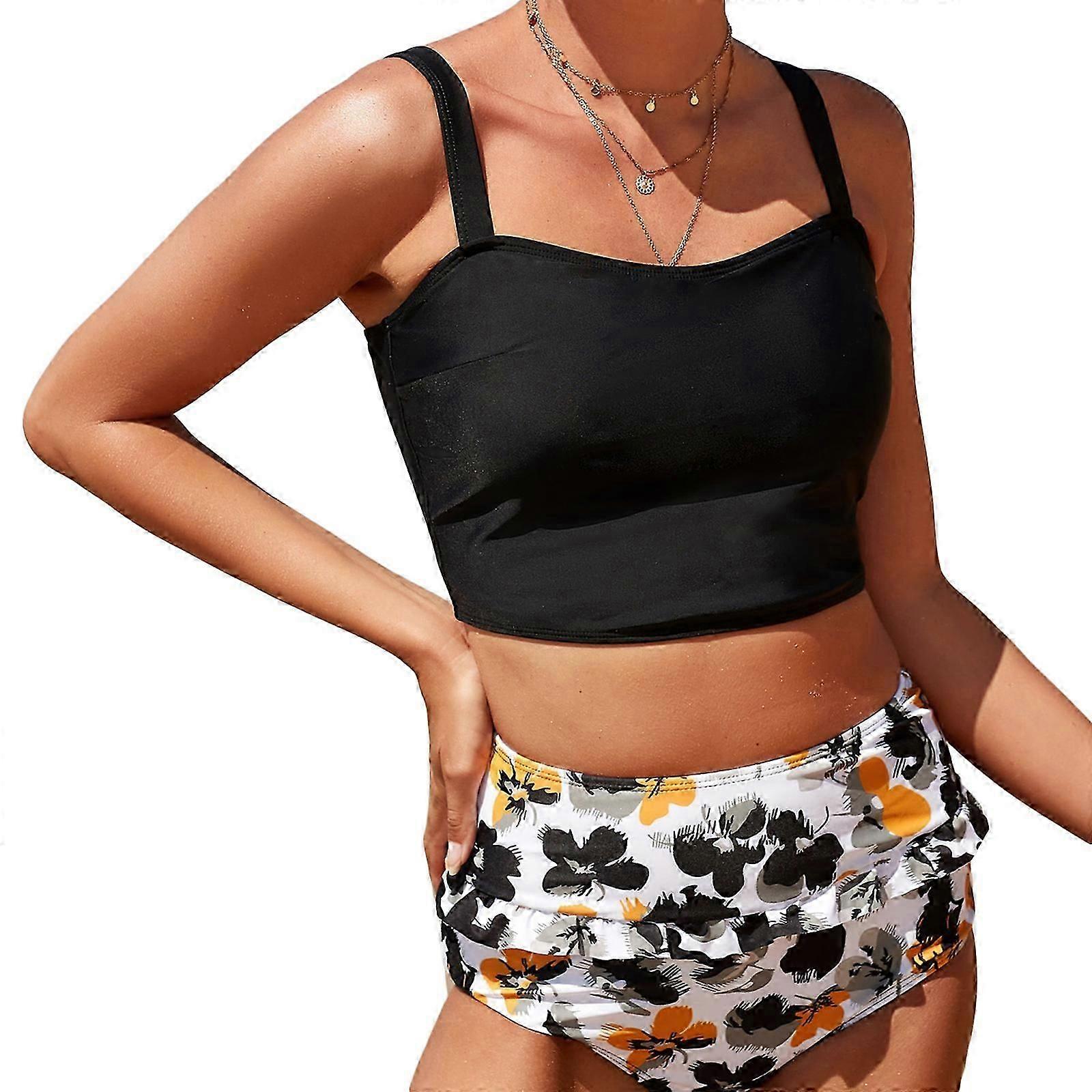 Women Slim Bathing Suit Two Piece Swimsuit Fashion High Waist Print Swimsuit Adjustable Strap Bikini Set for Beach Pool rose Red XXL