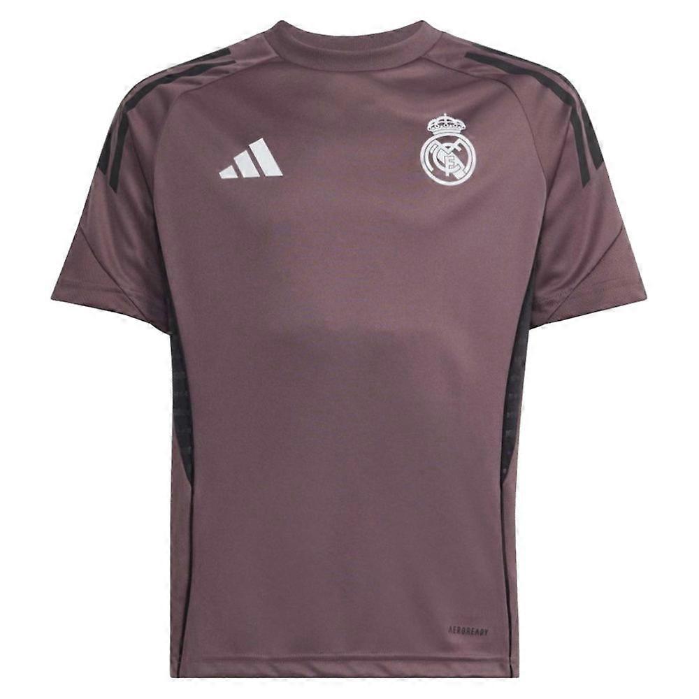 Elevate your young fan\'s matchday preparation with the official Real Madrid training kitWatch your budding Madridista train like the legends at the Santiago Bernabu with this premium 2025-2026 kids\' training jersey. Designed in the striking Shadow Fig colourway, this authentic training wear combines the club\'s iconic heritage with cutting-edge performance technology.Train Like ChampionsCrafted from advanced moisture-wicking fabric, this training jersey keeps young players cool and comfortable whether they\'re practising their skills in the garden or supporting Los Blancos from the stands. The lightweight, breathable material ensures optimal ventilation during intensive training sessions, whilst the ergonomic fit allows complete freedom of movement.Authentic Real Madrid StyleFeaturing the legendary club crest proudly displayed on the chest, this training jersey showcases your child\'s unwavering loyalty to the most successful club in European football history. The sophisticated Shadow Fig colourway offers a contemporary twist on Real Madrid\'s classic aesthetic, making it perfect for training and casual wear alike.Make It PersonalPersonalisation Available - Transform this training jersey into a truly unique piece by adding your child\'s name and favourite number to the back. Whether they idolise Bellingham, Vincius Jnior, or dream of becoming the next Galctico themselves, personalisation creates a treasured keepsake they\'ll cherish for years to come.PersonalisationName & Number - Customise your jersey with the name and number of your favourite Real Madrid player or even your own name. We can print name in the same style worn by the players.