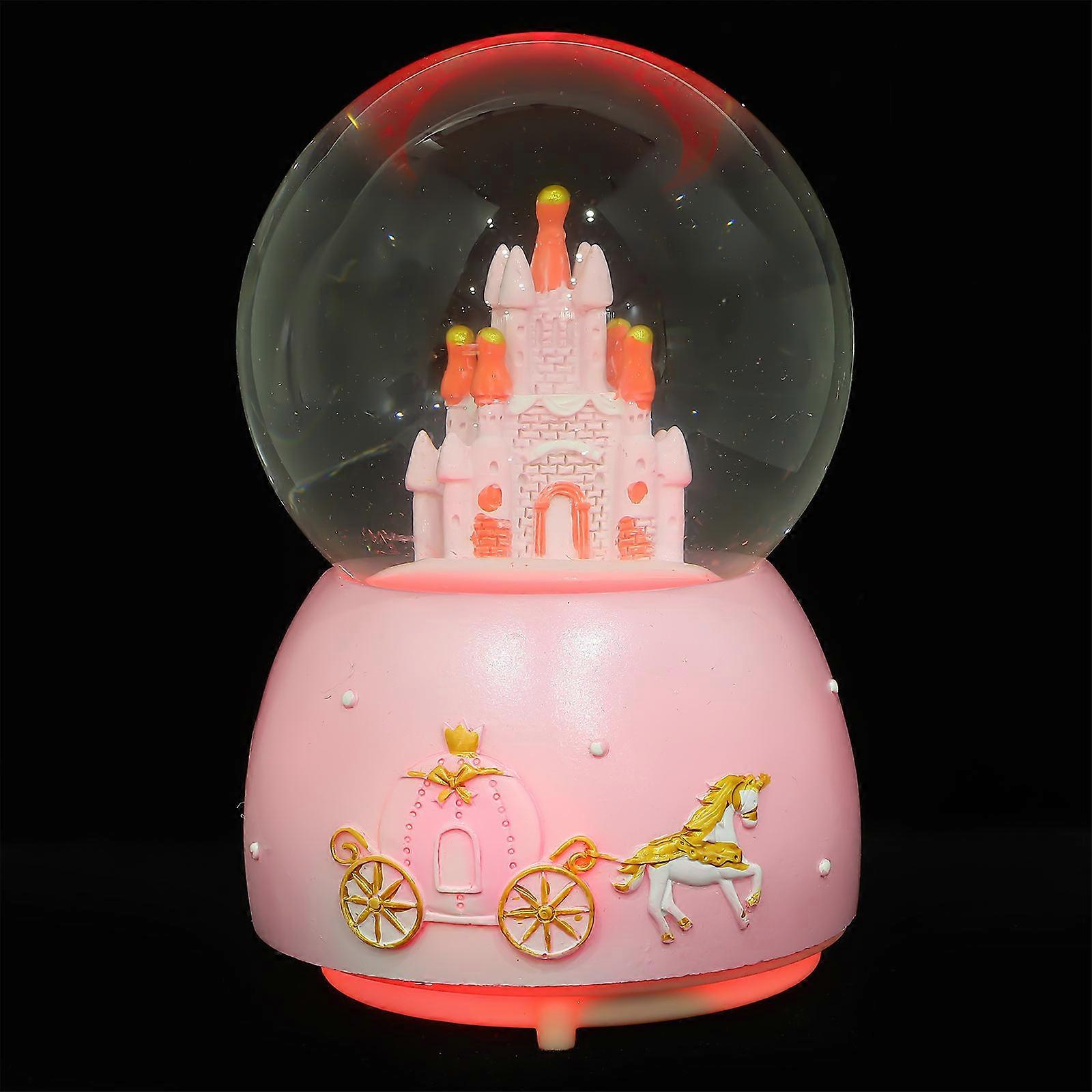 Decorative Musical Globe Fairy Tale Castle Crystal Ball Plays Music Round Pink 1Pcs