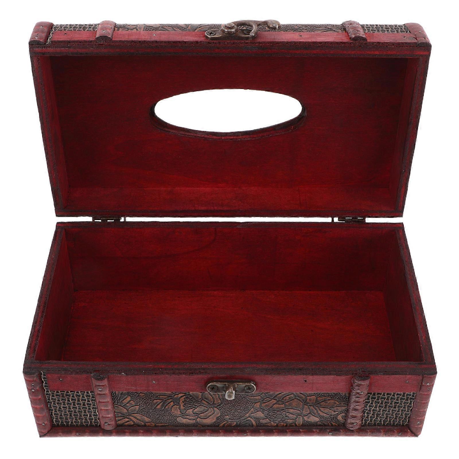 Retro Tissue Box Holder Rectangle Facial Paper Container Wood For Home Decor 8.7×4.7×3.5in 1Set