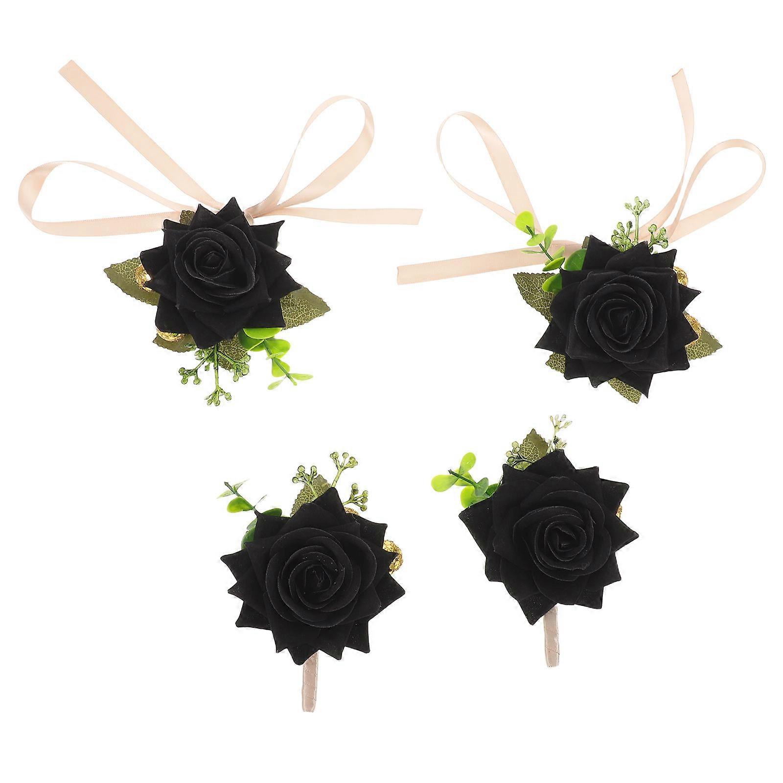 Gothic Style Flower Wrist Corsage for Weddings 2Sets Black Rose Corsages