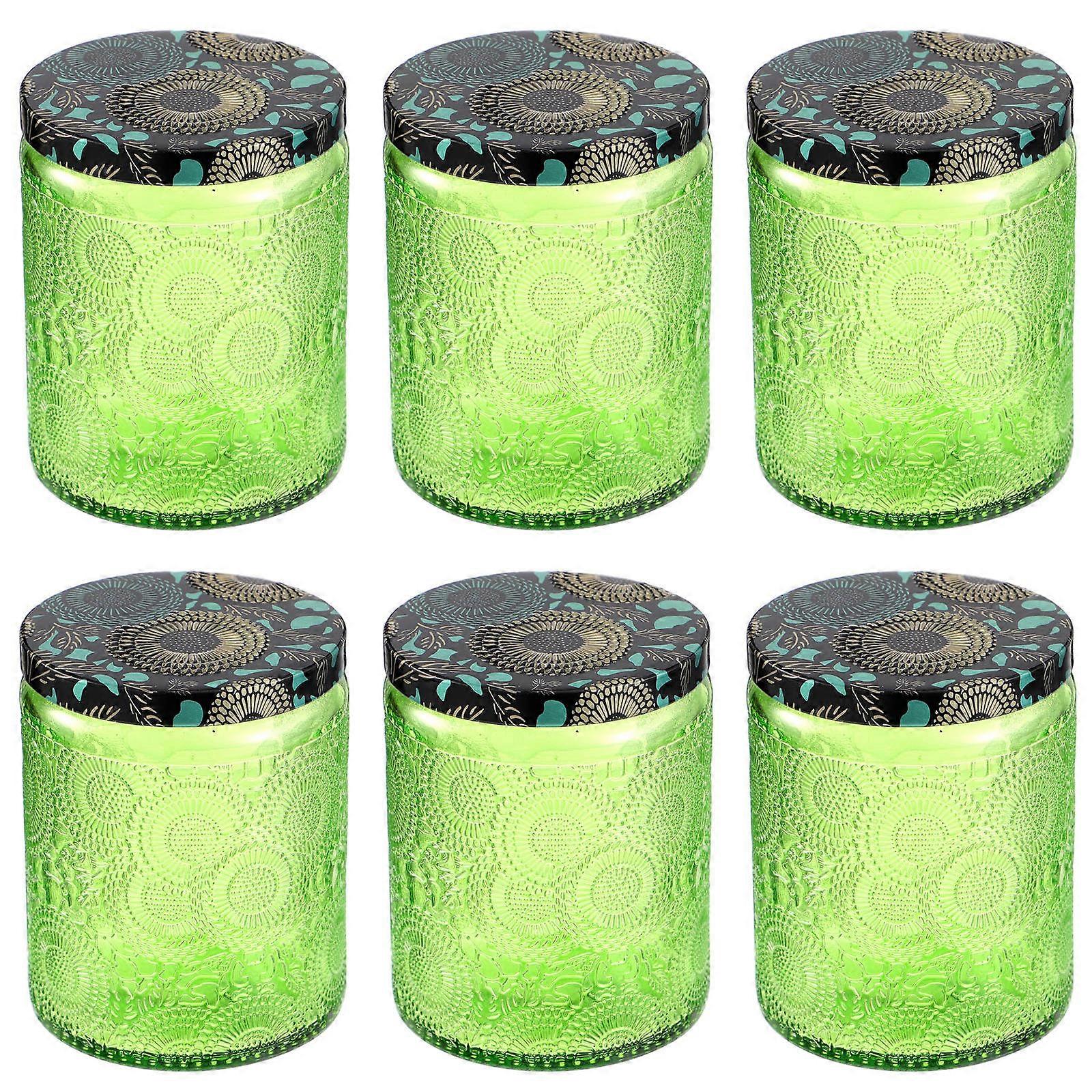 6Pcs Green Glass Candle Jar for Storage Embossed Round Containers