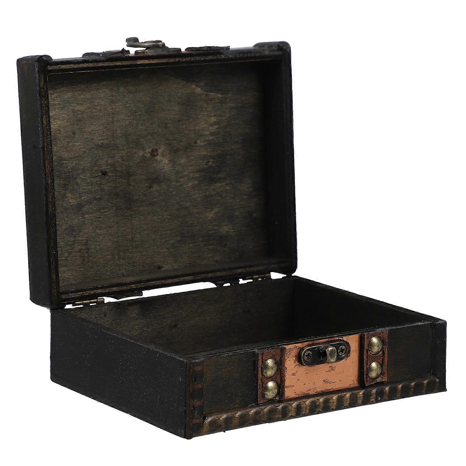 Vintage Wooden Jewelry Box with Lock Small Multipurpose Treasure Chest
