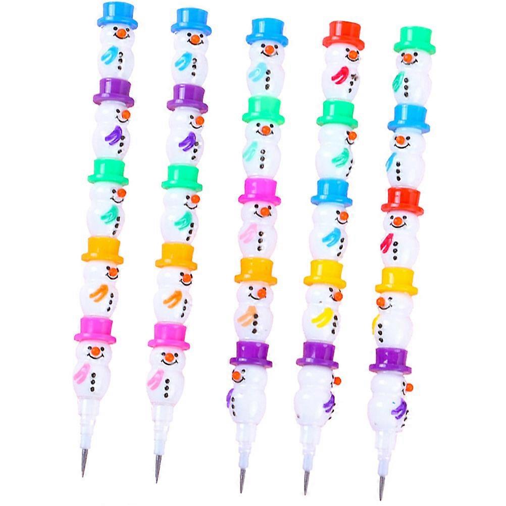 Accumulated Pencil Plastic Stacking Pencils for Writing 5Pcs Cartoon Snowman