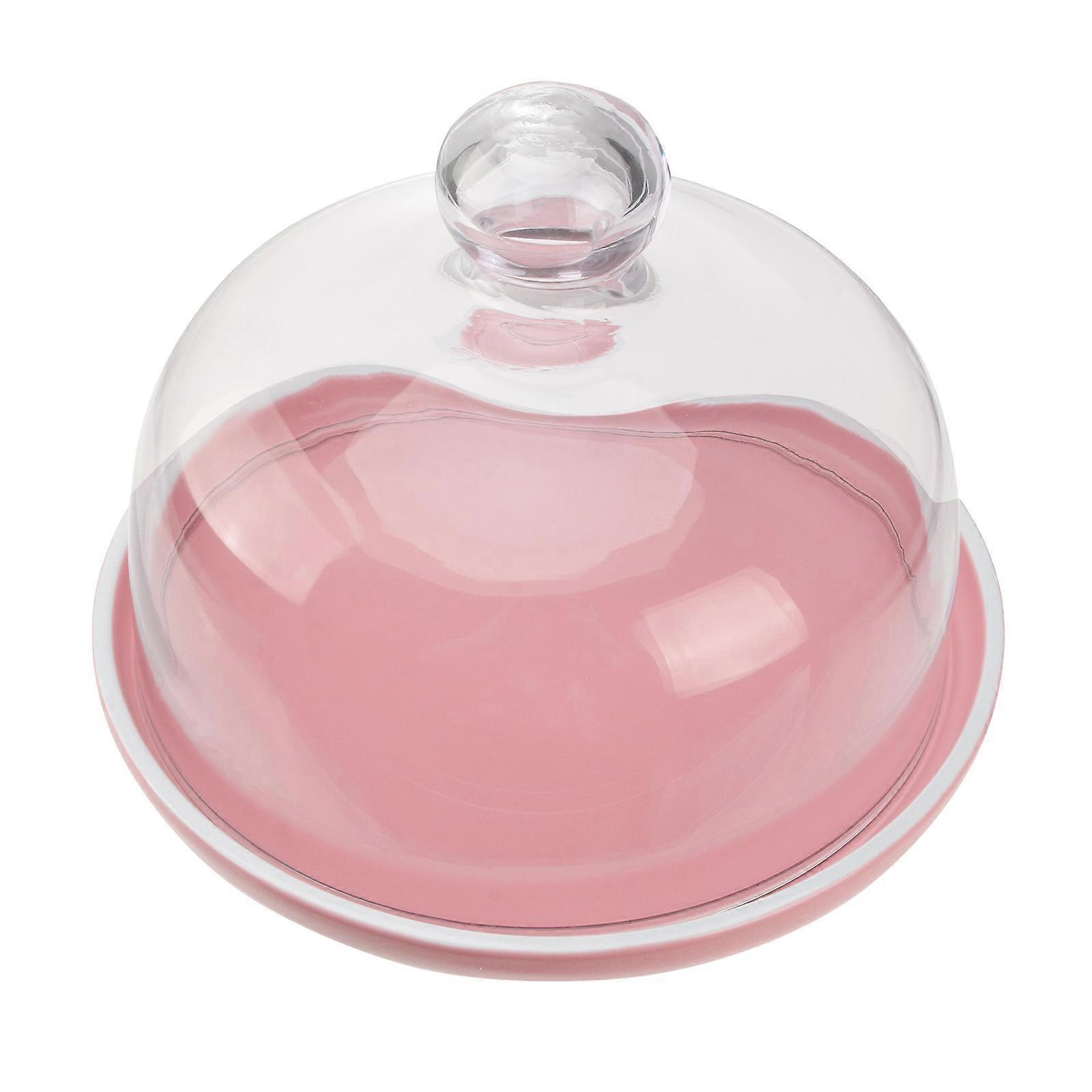 Cake Stand With Dome Lid Transparent Glass Lid For Party Hosting Pink Color Hygiene Maintenance 1 Set