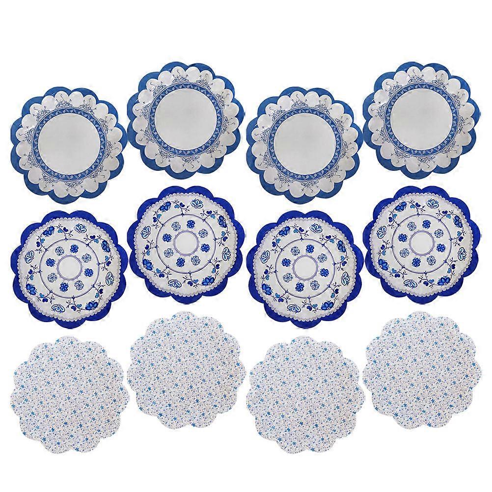 Blue and White Paper Plates Chinese Style Cake Plate for Party 12Pcs