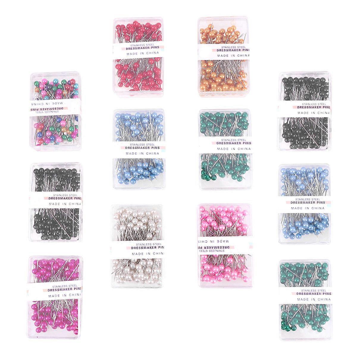 Multi-Color Beaded Head Pin Dressmaker Pin for Holding Use 12 Box